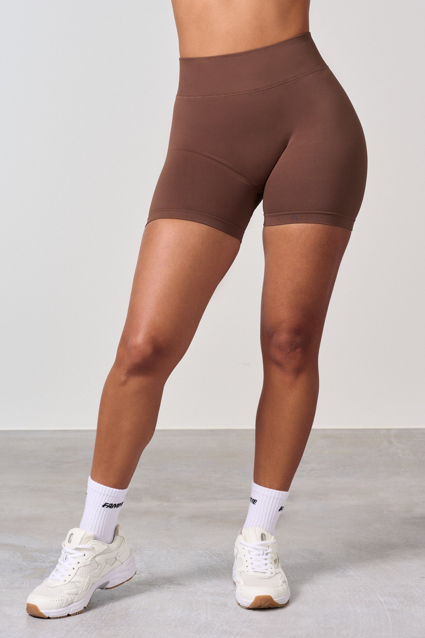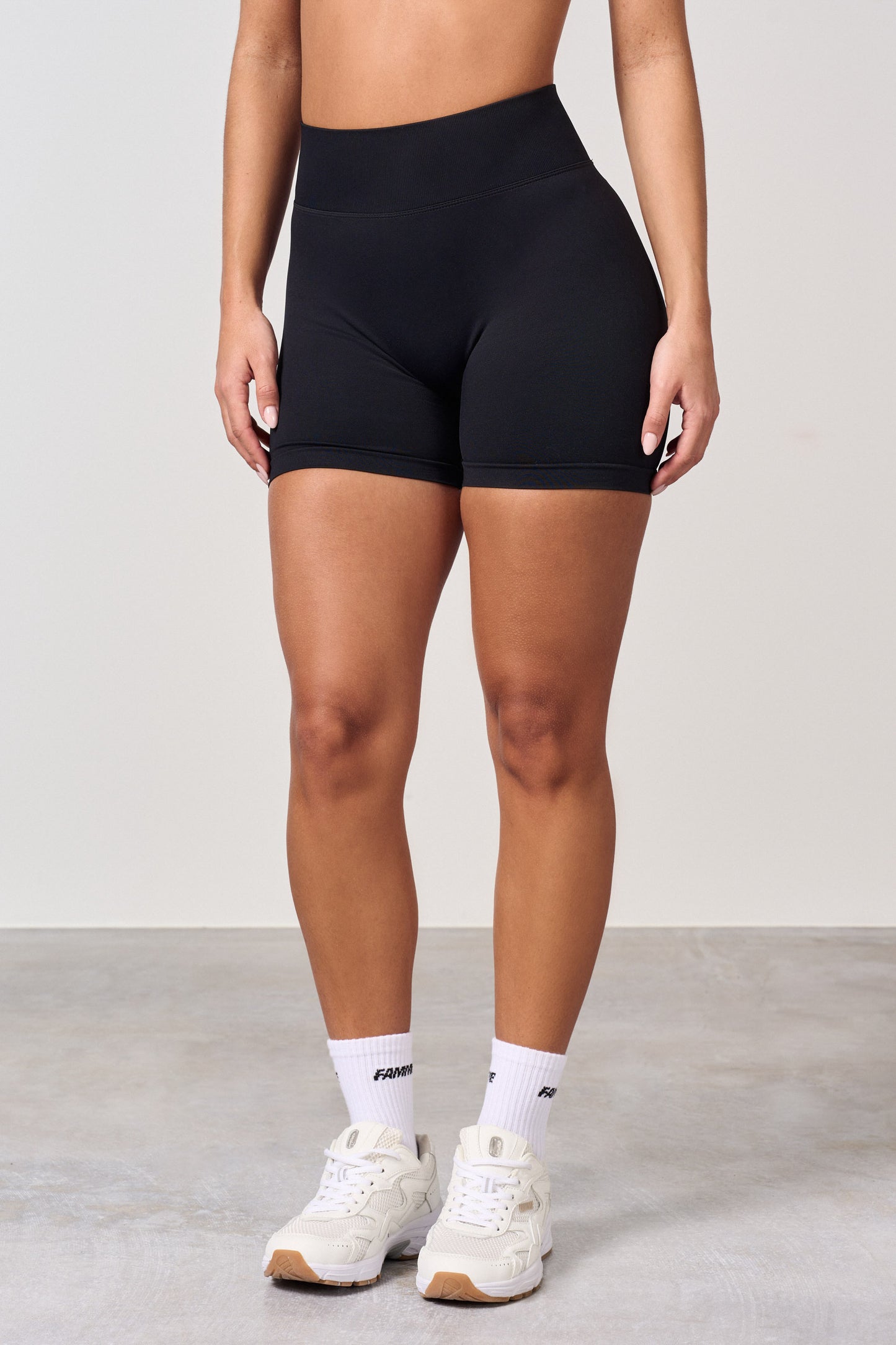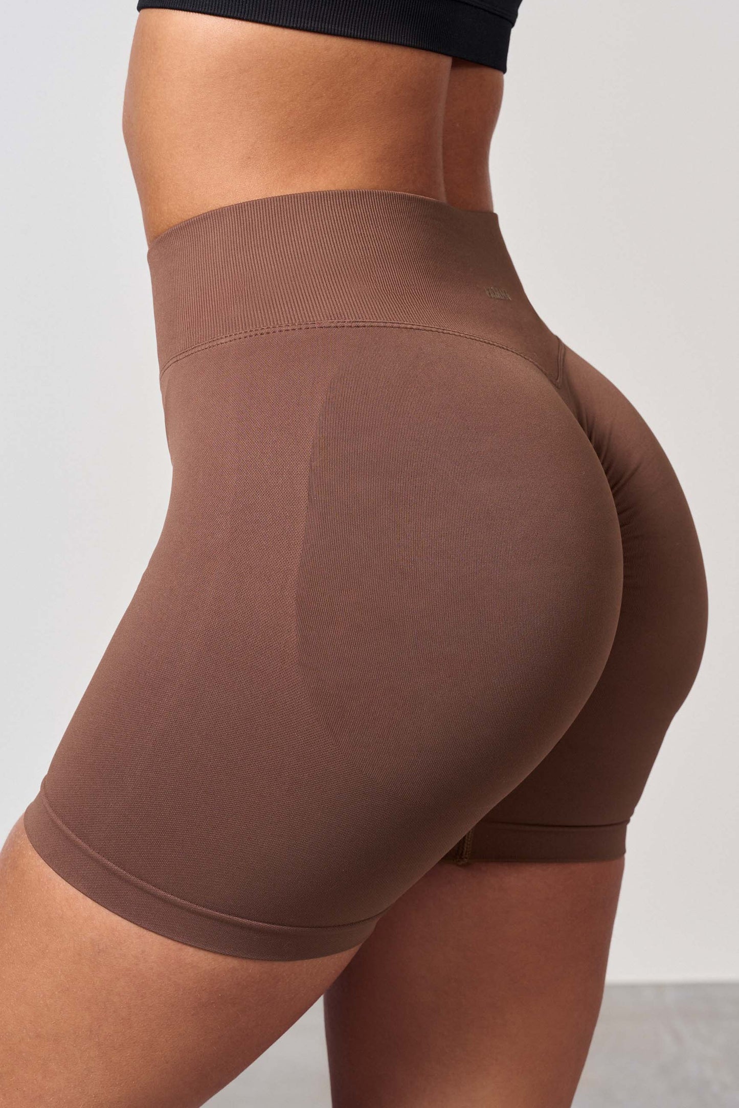 Höga midja träningsshorts med scrunch-effekt. Den nya scrunchen ger rumpan en naturligt fin passform, slät hud och inga veck. Scrunch-shorten ger önskad effekt på alla rumpor, men man ser knappt att den har scrunch. Shortsen har ingen frontsöm och sitter bra runt midjan. Shortsen är lite kortare i midjan än leggingsen.