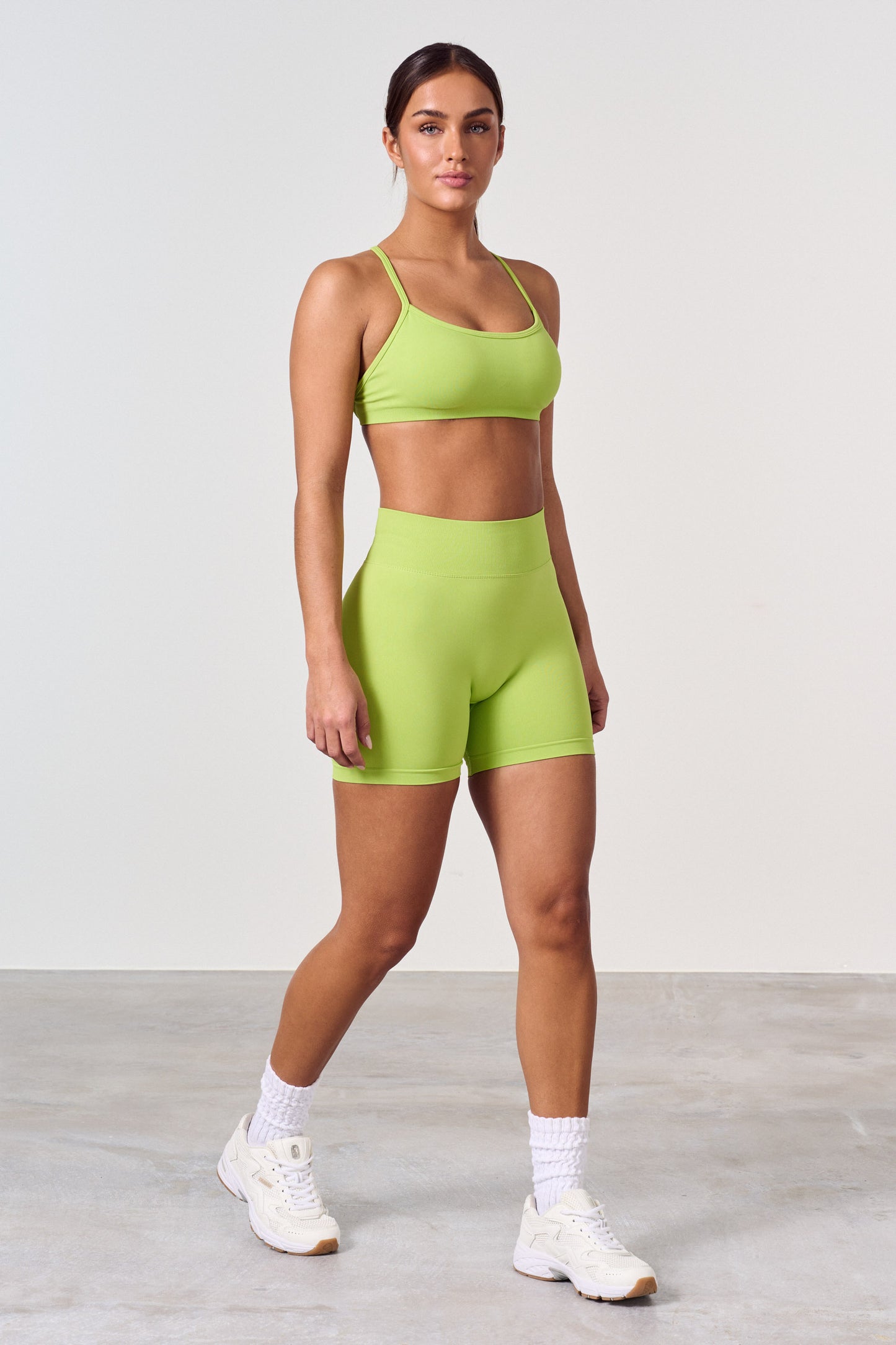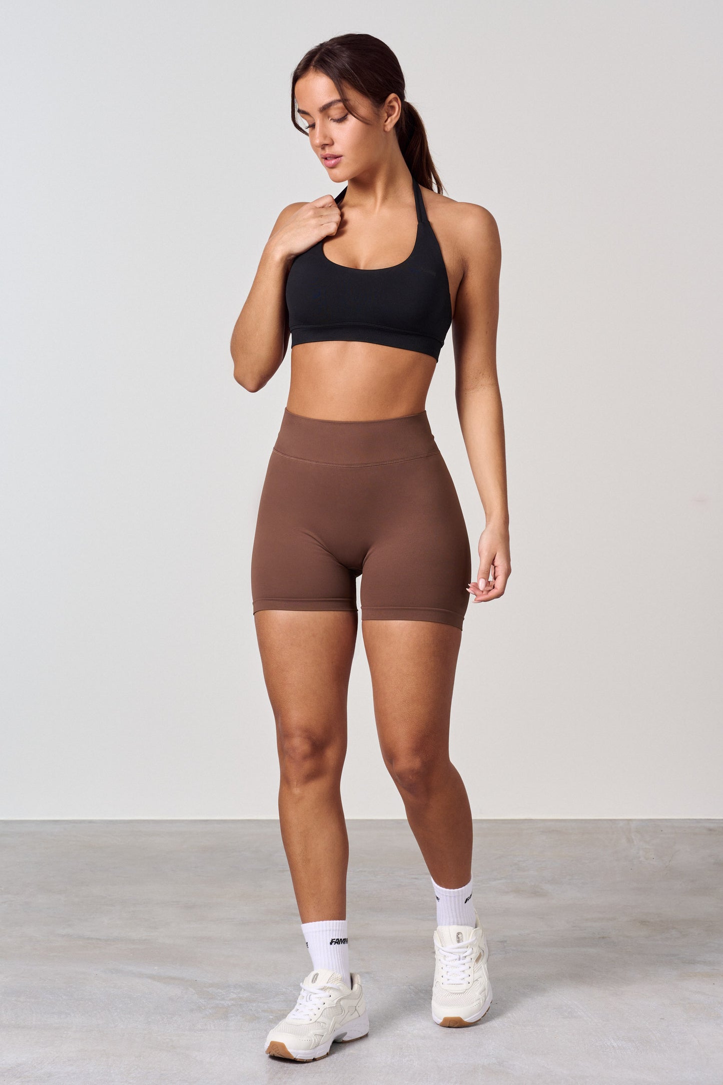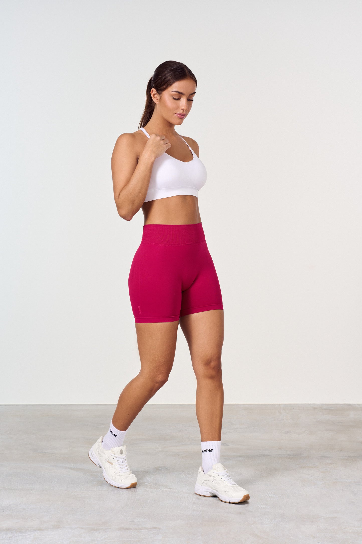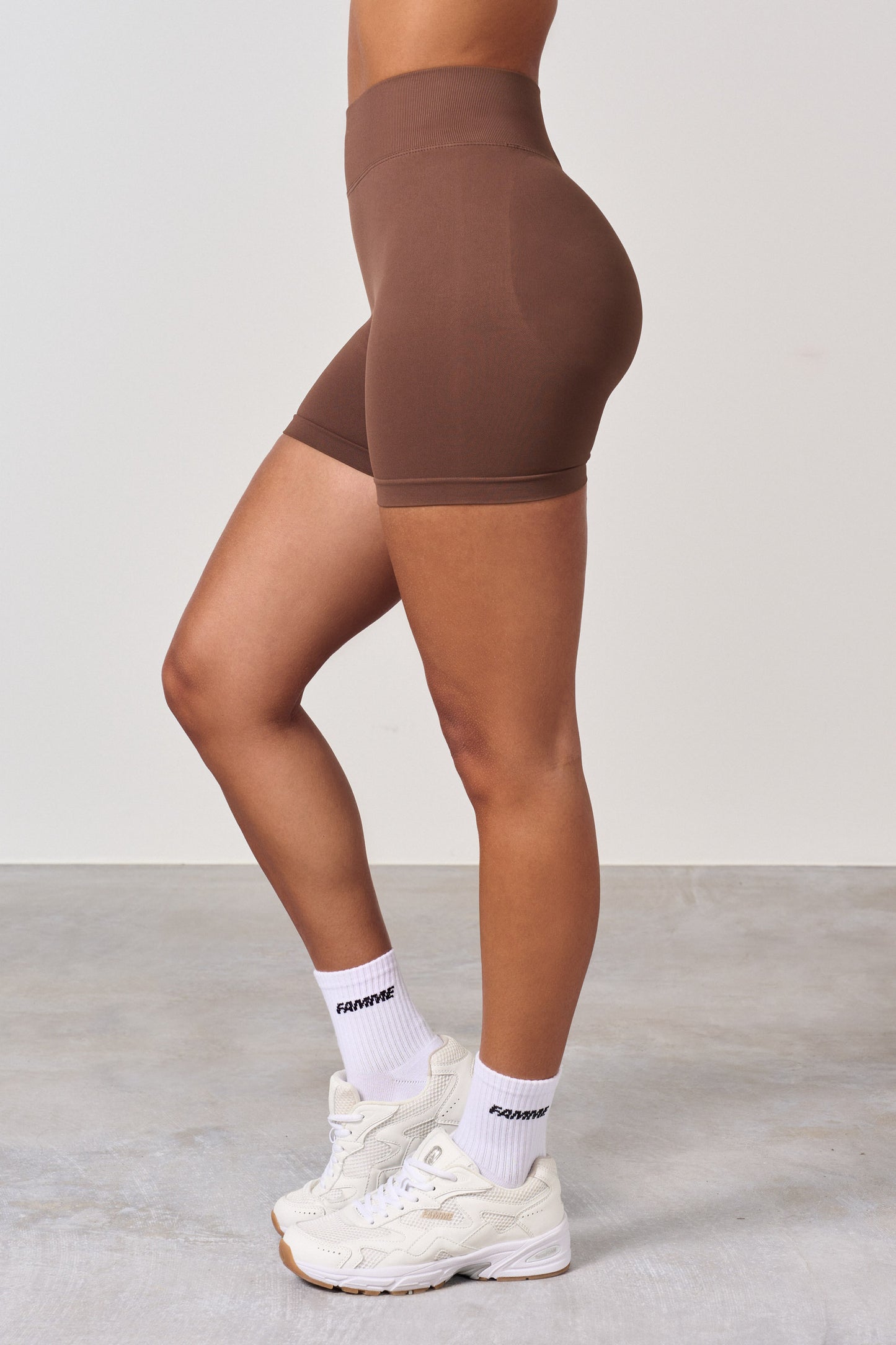 Höga midja träningsshorts med scrunch-effekt. Den nya scrunchen ger rumpan en naturligt fin passform, slät hud och inga veck. Scrunch-shorten ger önskad effekt på alla rumpor, men man ser knappt att den har scrunch. Shortsen har ingen frontsöm och sitter bra runt midjan. Shortsen är lite kortare i midjan än leggingsen.